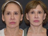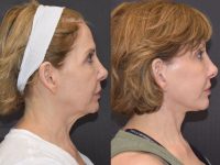 Patient in her mid 60s presented with jowls, droopy cheeks, heavy neck and elongated upper lip. She is seen here 6 months post-operatively.