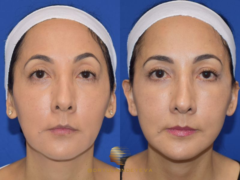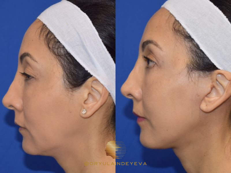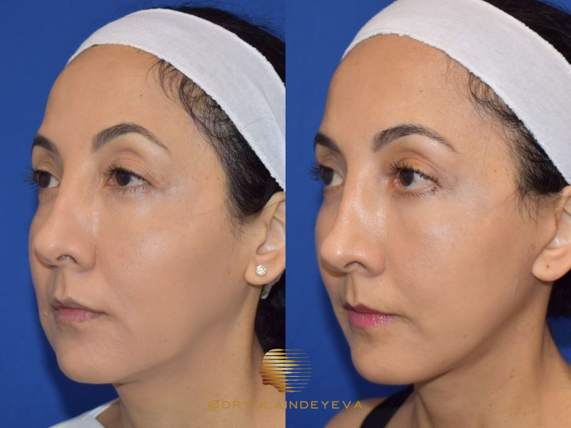Patient is shown 2 months post-op from an Extended Deep Plane Facelift and Deep Structural Necklift to sharpen the jawline and correct early platysmal bands in the neck. Additional procedures performed: Temporal Lift, Upper Blepharoplasty, Lower Blepharoplasty with Fat Transposition.